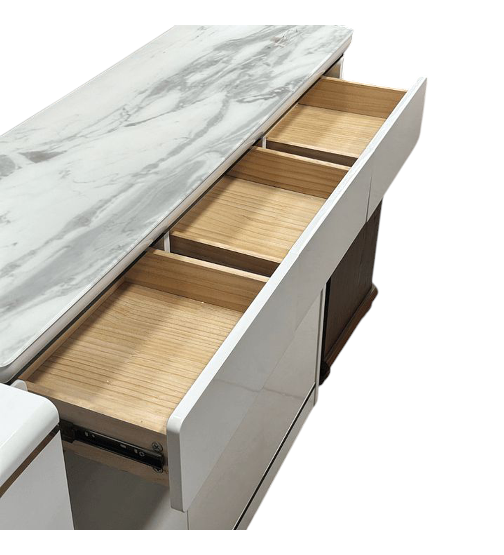 GAVETERO CON CUBIERTA EN MÁRMOL STANLEY, una solución ideal para organizar y mostrar tus prendas de manera elegante y sofisticada. Este gavetero destaca por su cubierta de mármol de alta calidad, que no solo aporta un acabado moderno, sino que también garantiza durabilidad y resistencia.